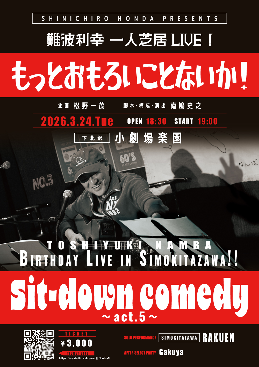 | 2026.3.16 | Sit-down comedy -act.5- SHINICHIRO HONDA PRESENTS! 難波利幸一人芝居LIVE!『もっとおもろいことないか!』の公式サイトを公開いたしました。 詳しくはこちらから |