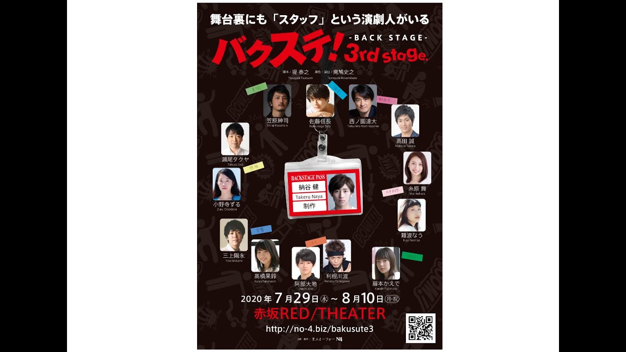 stage.』という作品はこの3日間のスタッフルームでの出来事を描いています。普段見ることのできない生々しいスタッフたちの言動。大ゲンカや大笑いの中に起きる演劇人ならではのアルアル。さほどヒットしているとは思えない舞台作品に携わるスタッフたちの生きざまが徐々に見え始め、ある出来事をきっかけにこのスタッフたちは一丸となるのか?人間の心の中にあるプライドやくだらなさがぶつかり合う姿にどうしても笑ってしまい、心が締め付けられたりもします。文字通り明日が明るい日になりますように。